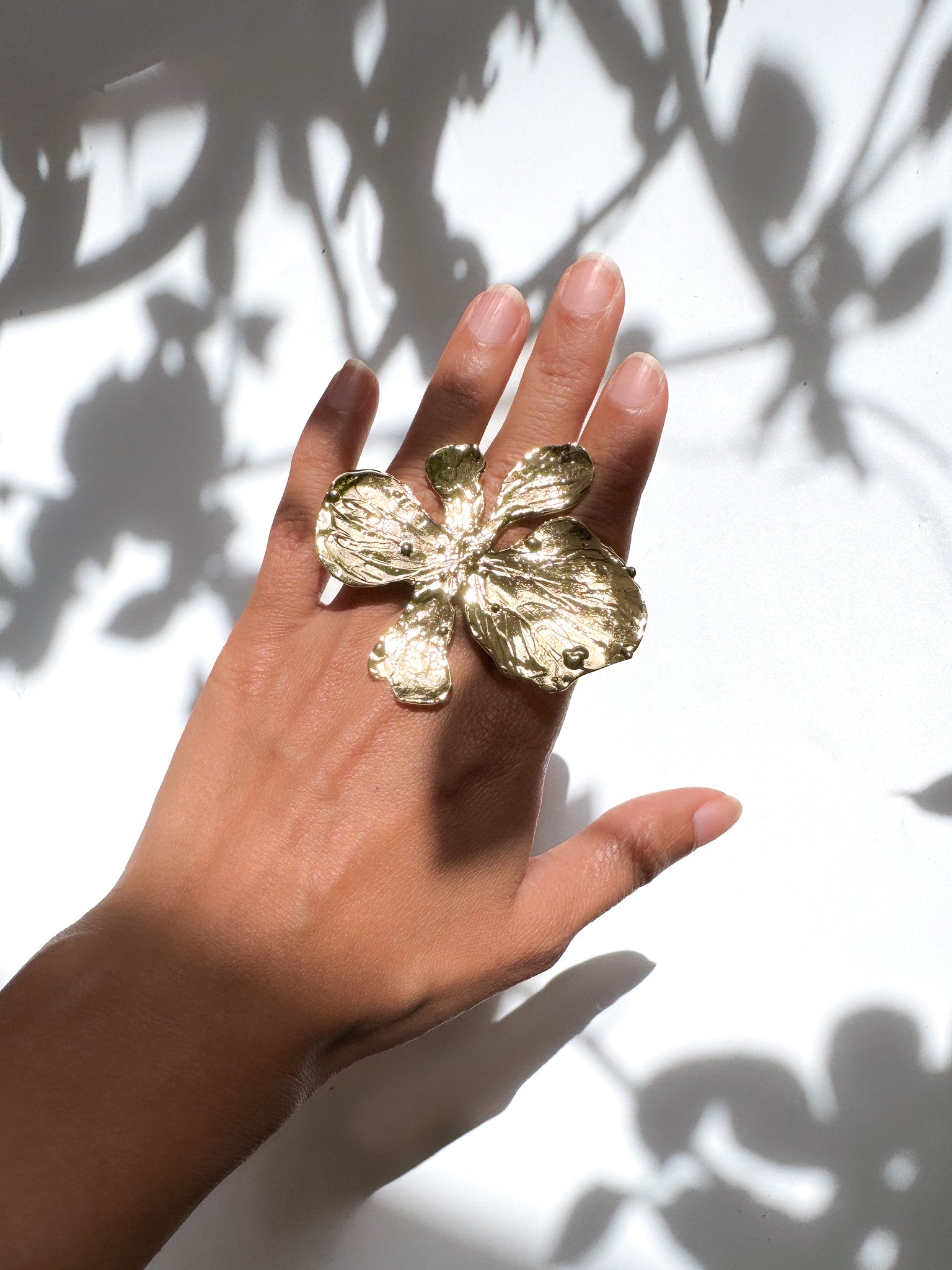 Referenced from botanical illustrations of the Magnolia flower, this gold dipped ring is a gorgeous accent piece !