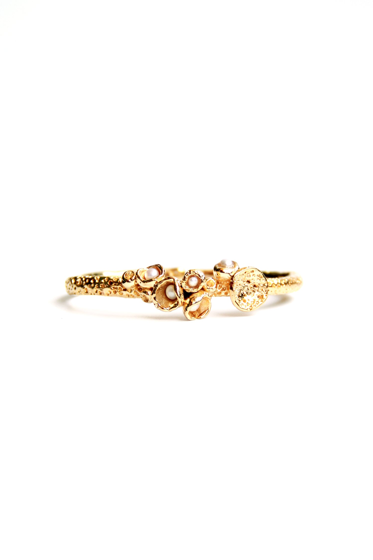 A collection born from a personal love for pearls & fascination with the oceans. Each piece is made using, handpicked freshwater keshi pearls. The delicately etched & sculptured brass barnacles are reminiscent of the ocean's floral beauty.