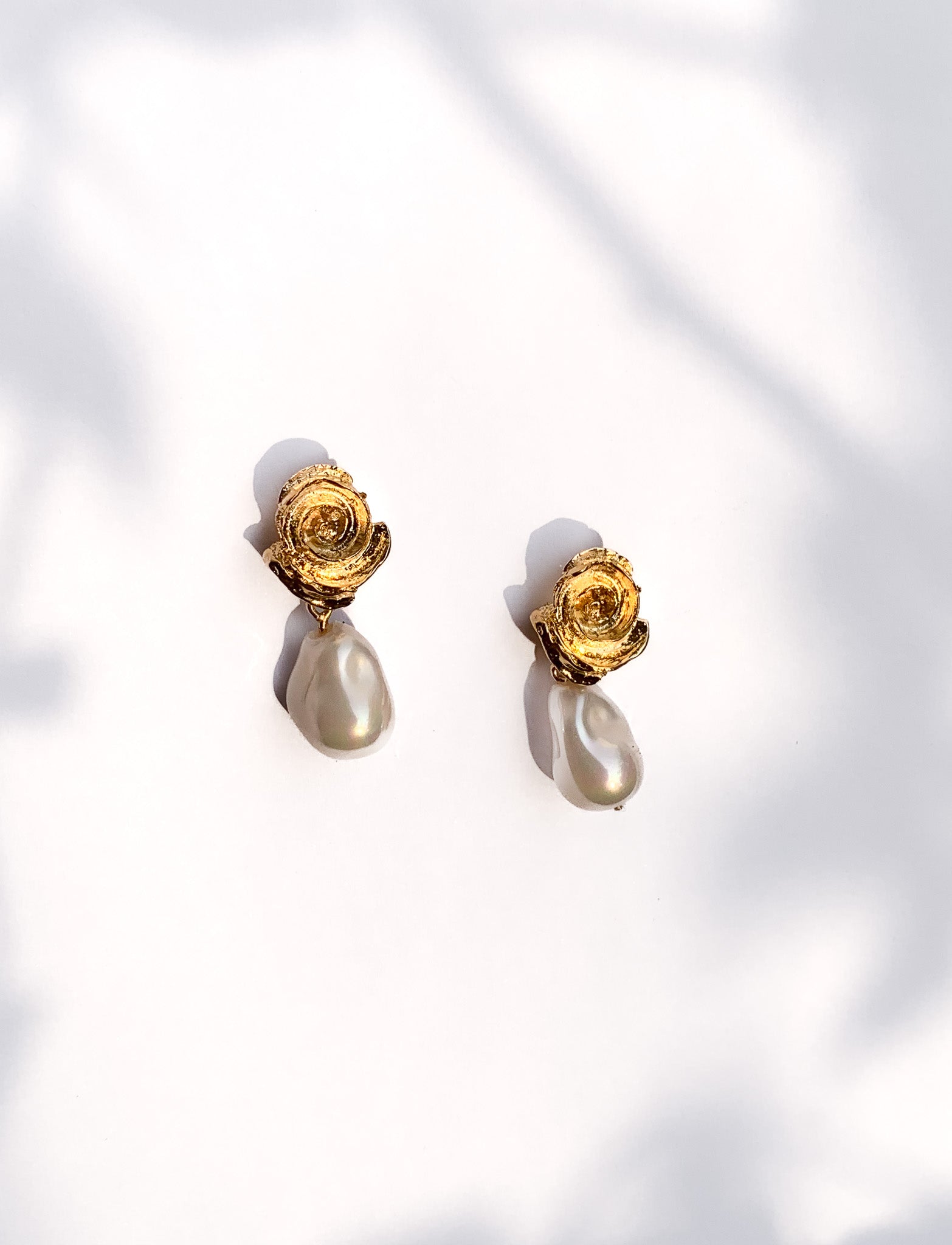 Each piece is made using, handpicked pearls. The delicately etched & sculptured brass barnacles are reminiscent of the ocean's floral beauty.