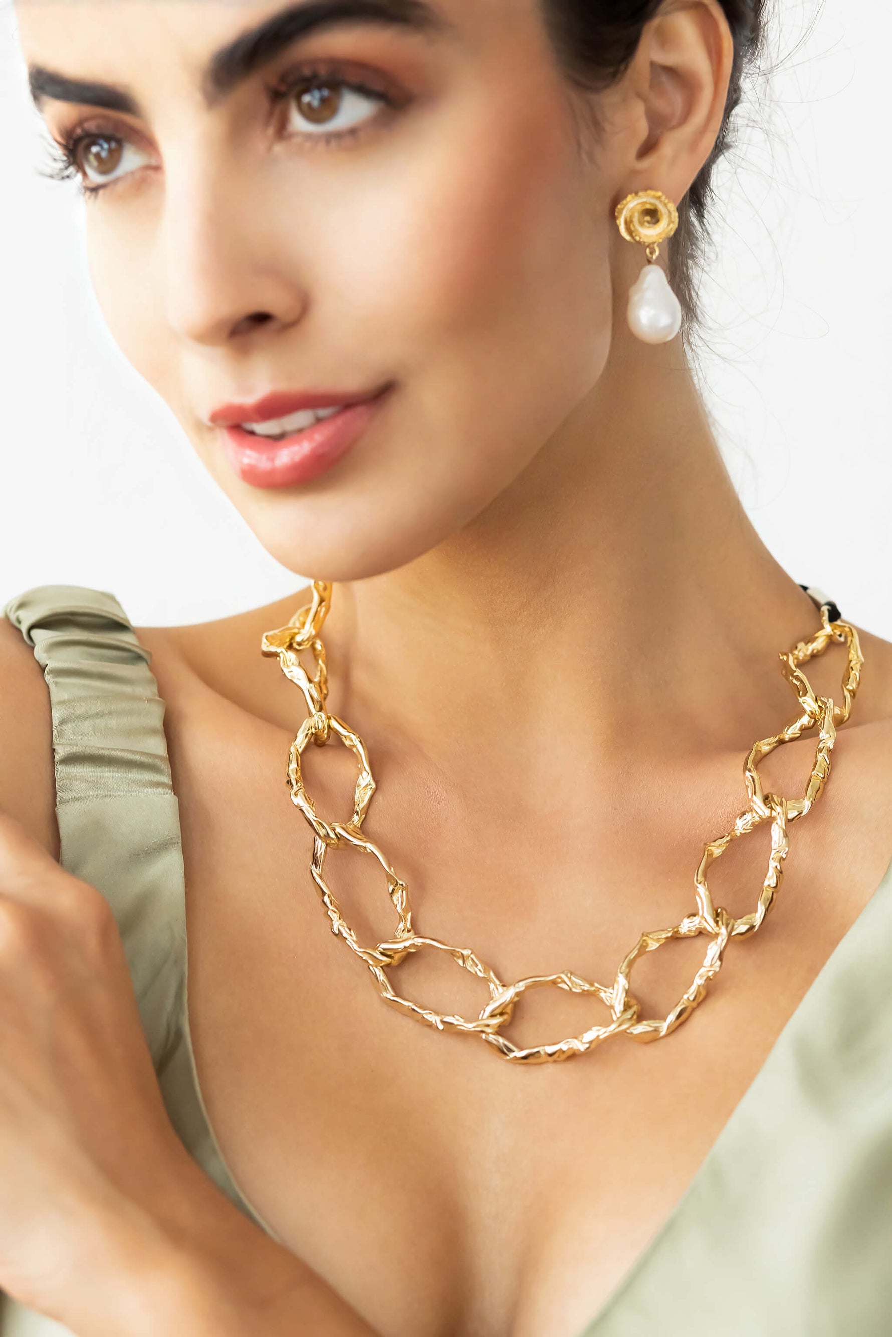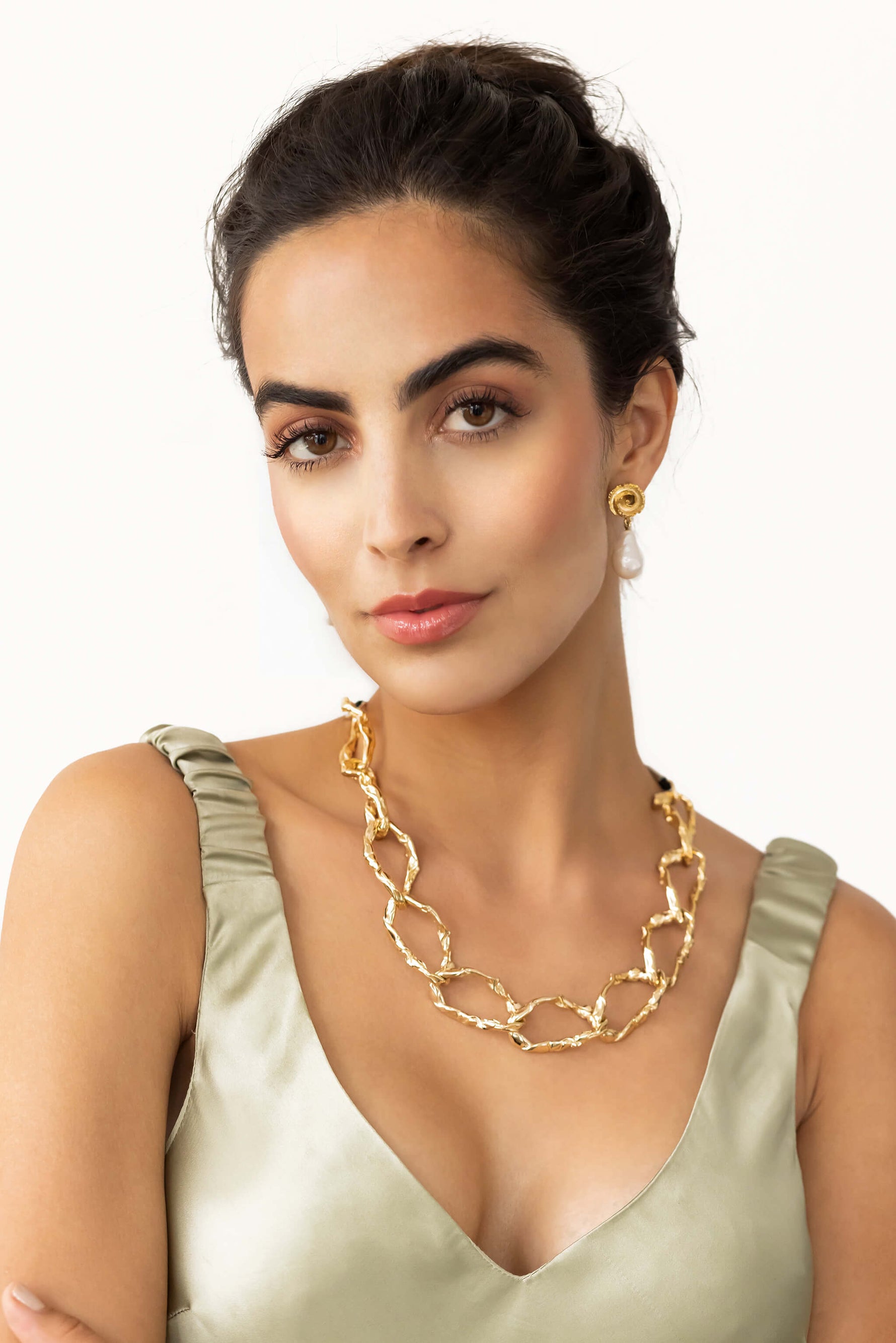 The Chain Link necklace is chunky & edgy, best worn into the night. A sculptural take on industrial chains in continuation from the river series.