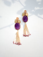 Hand carved Amethyst with green Quartz leaves and Rose Quartz flowers. Set in a micron gold dipped sterling silver frame.