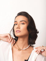 Add a touch of elegance to your look with the dainty and chic Ivory & Gold Necklet.