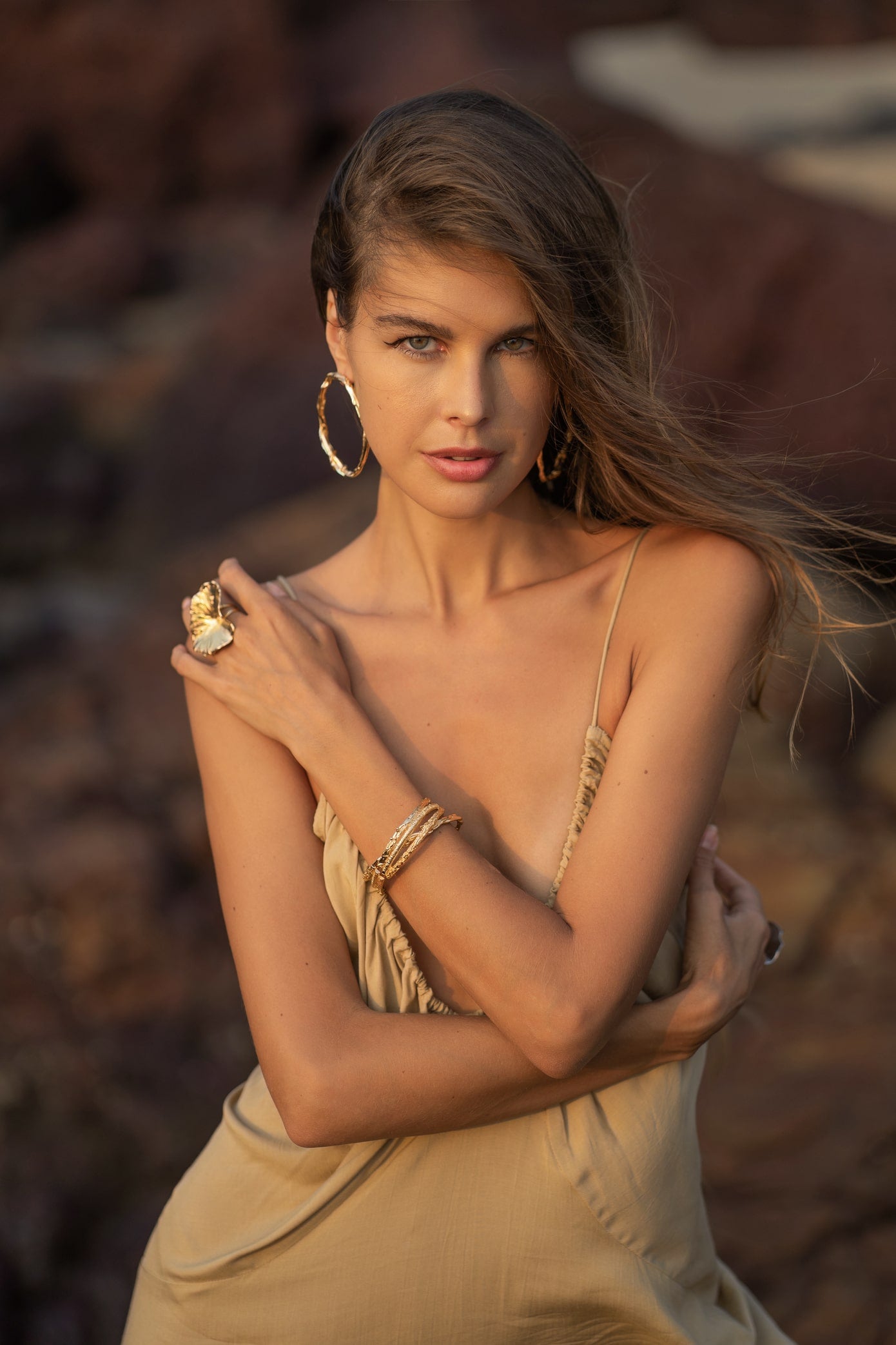 This collection explores dialogues from past explorations & serves as a bridge to our Spring Summer '20. With statement chokers & earrings, minimal earring studs, chunky hoops & cuffs, it is ideal for a cocktail evening. Each piece has been personally sculpted by hand and finished by skilled Indian artisans for you.
