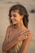 This collection explores dialogues from past explorations & serves as a bridge to our Spring Summer '20. With statement chokers & earrings, minimal earring studs, chunky hoops & cuffs, it is ideal for a cocktail evening. Each piece has been personally sculpted by hand and finished by skilled Indian artisans for you.
