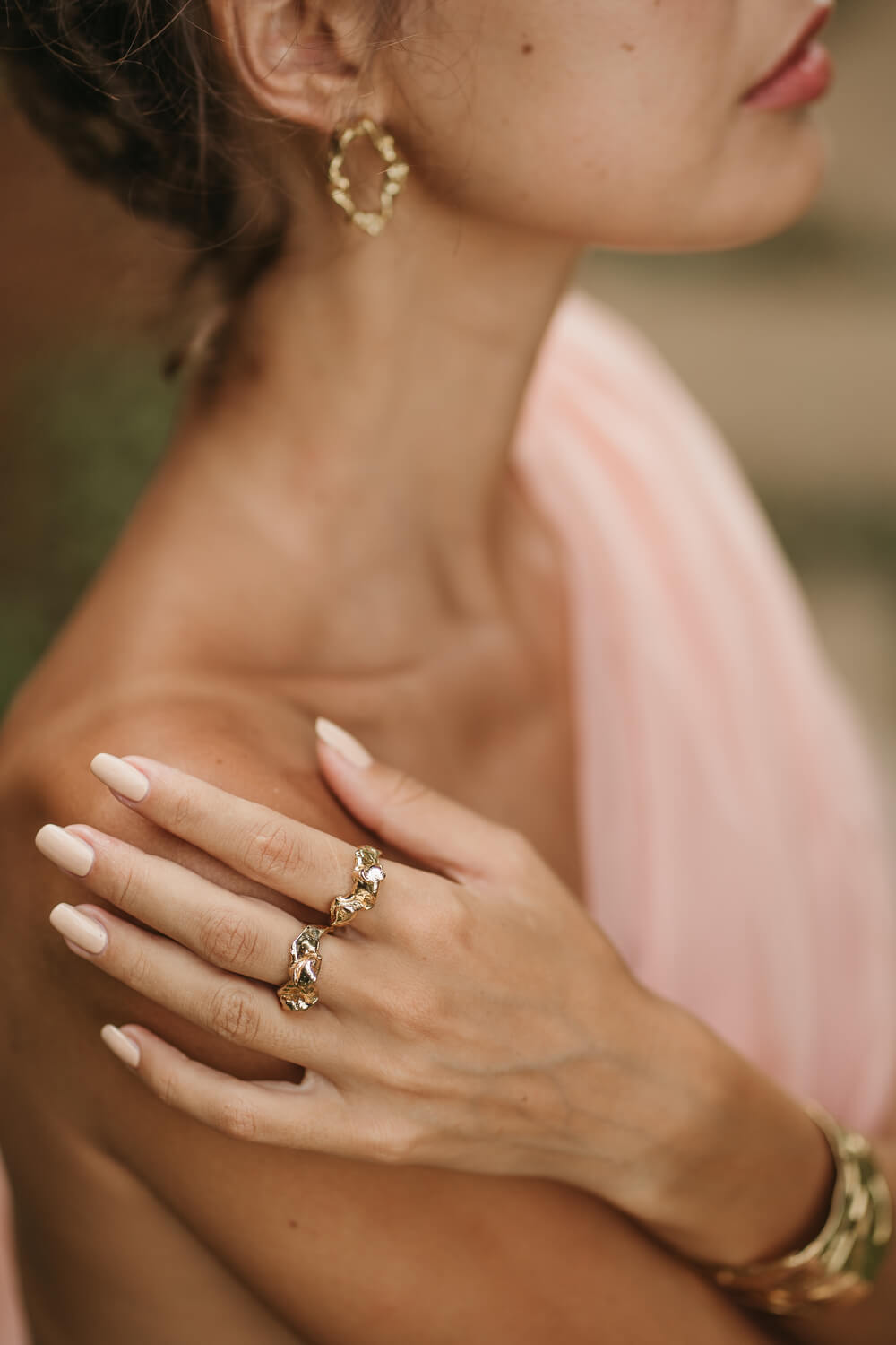 Inspired from the beautiful textures of corals and languid feel of underwater plants, each piece is an ode to nature. The perfect minimal ring that works beautifully as a single piece or stacked up to armour your fingers. This ring is Slightly Adjustable.