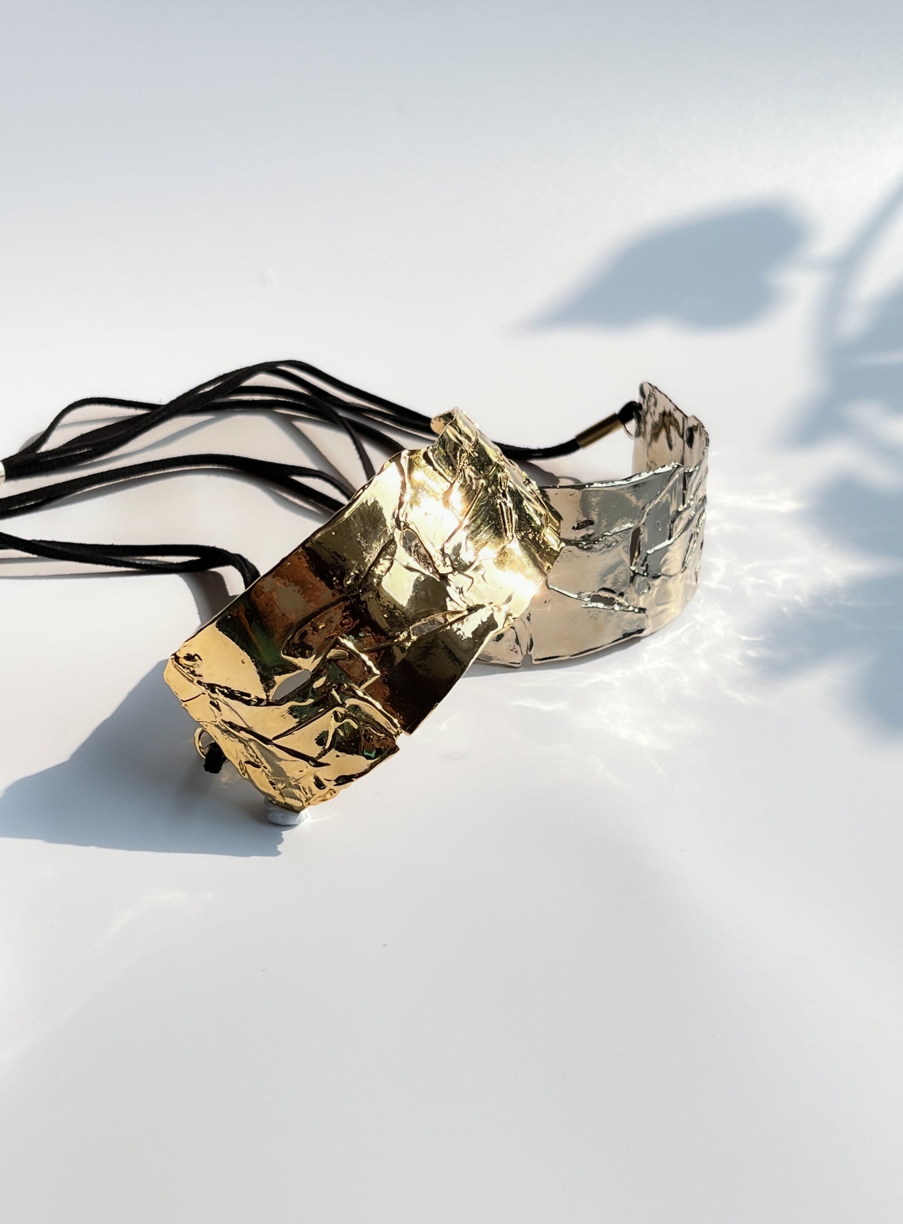 This collection explores dialogues from past explorations & serves as a bridge to our Spring Summer'20. With statement chokers & earrings, minimal earring studs, chunky hoops & cuffs, it is ideal for a cocktail evening. Each piece has been personally sculpted by hand and finished by skilled Indian artisans for you.