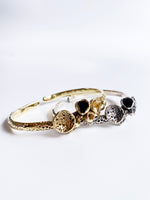 Composition : Hallmarked 92.7 sterling silver with keshi pearls & Oxidised finish. Adjustable bangle