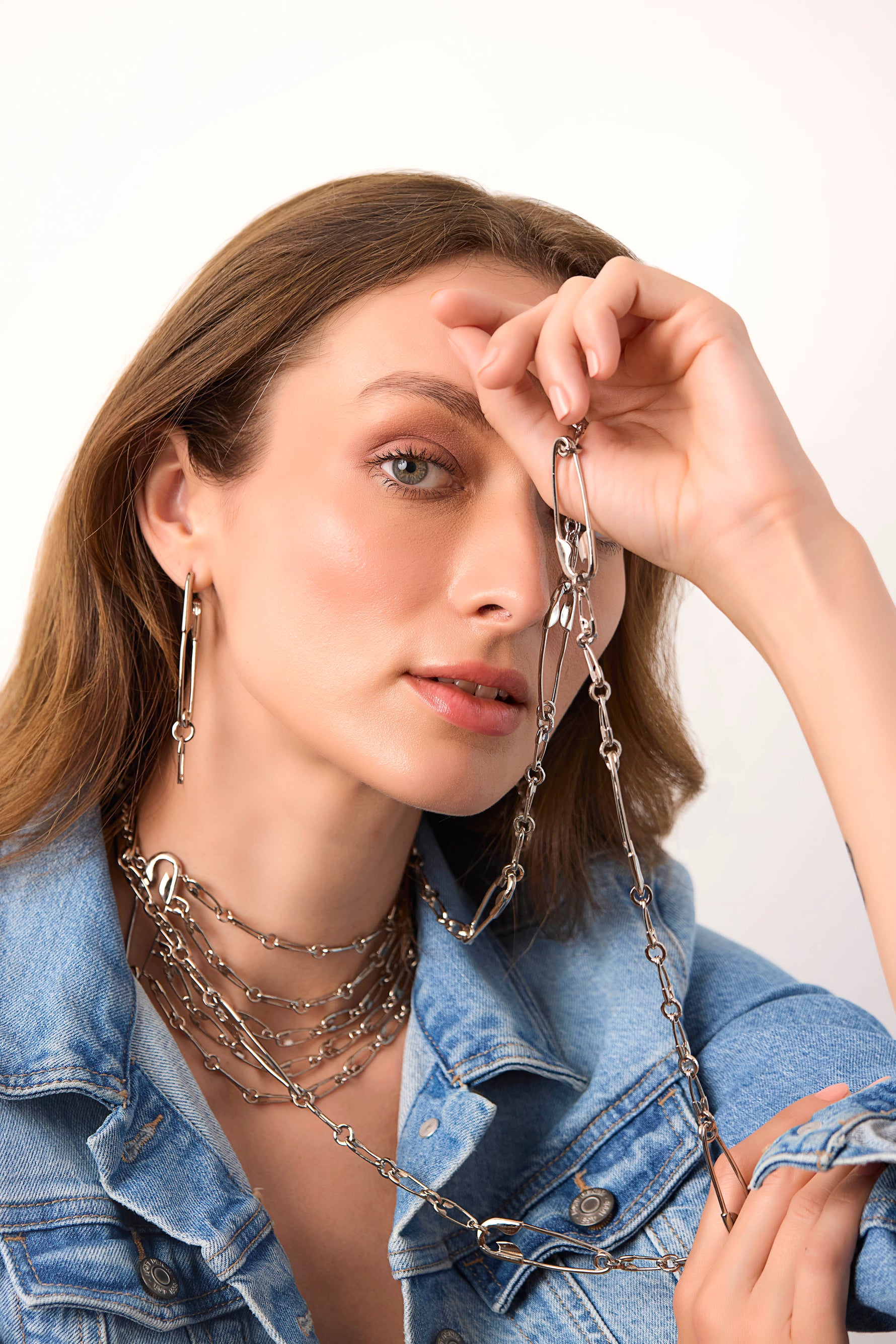 A lightweight eclectic Safety Pins into a long rope chain, is a wardrobe essential that is edgy and perfect to add some fun !