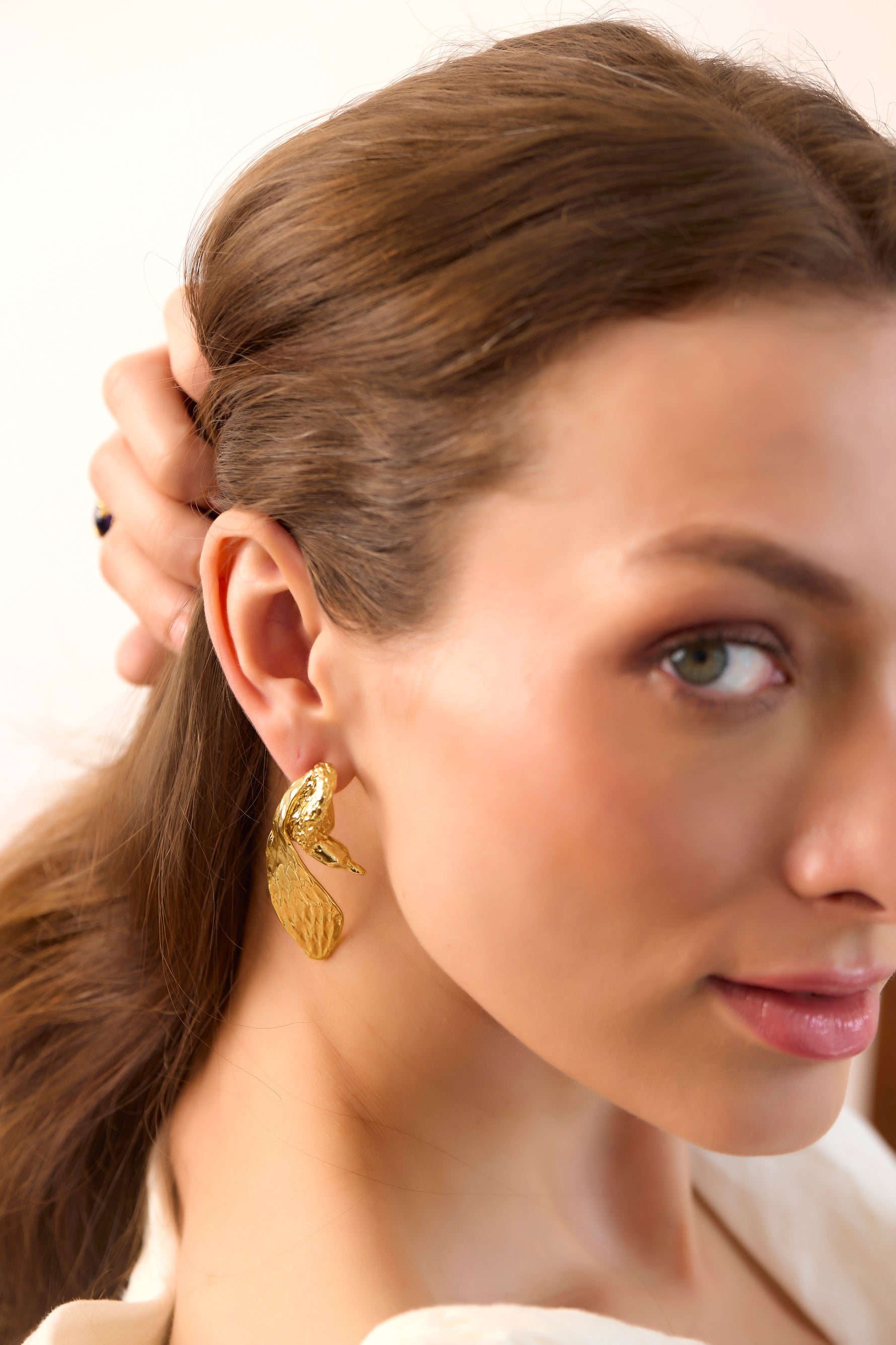 A pair of coy Art Nouveau Swan studs, sculpted and detailed by hand make for an exquisite statement look. These earrings are a touch heavy but are bound, to make you look stunning for an evening out !
