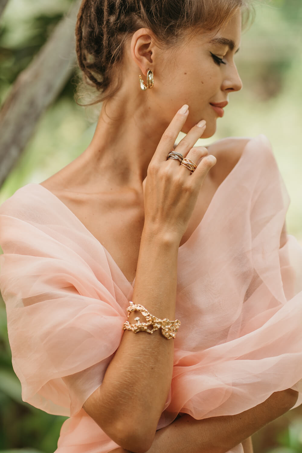Inspired from the beautiful textures of corals and languid feel of underwater plants, each piece is an ode to nature. The perfect minimal ring that works beautifully as a single piece or stacked up to armour your fingers. This ring is Not Adjustable.