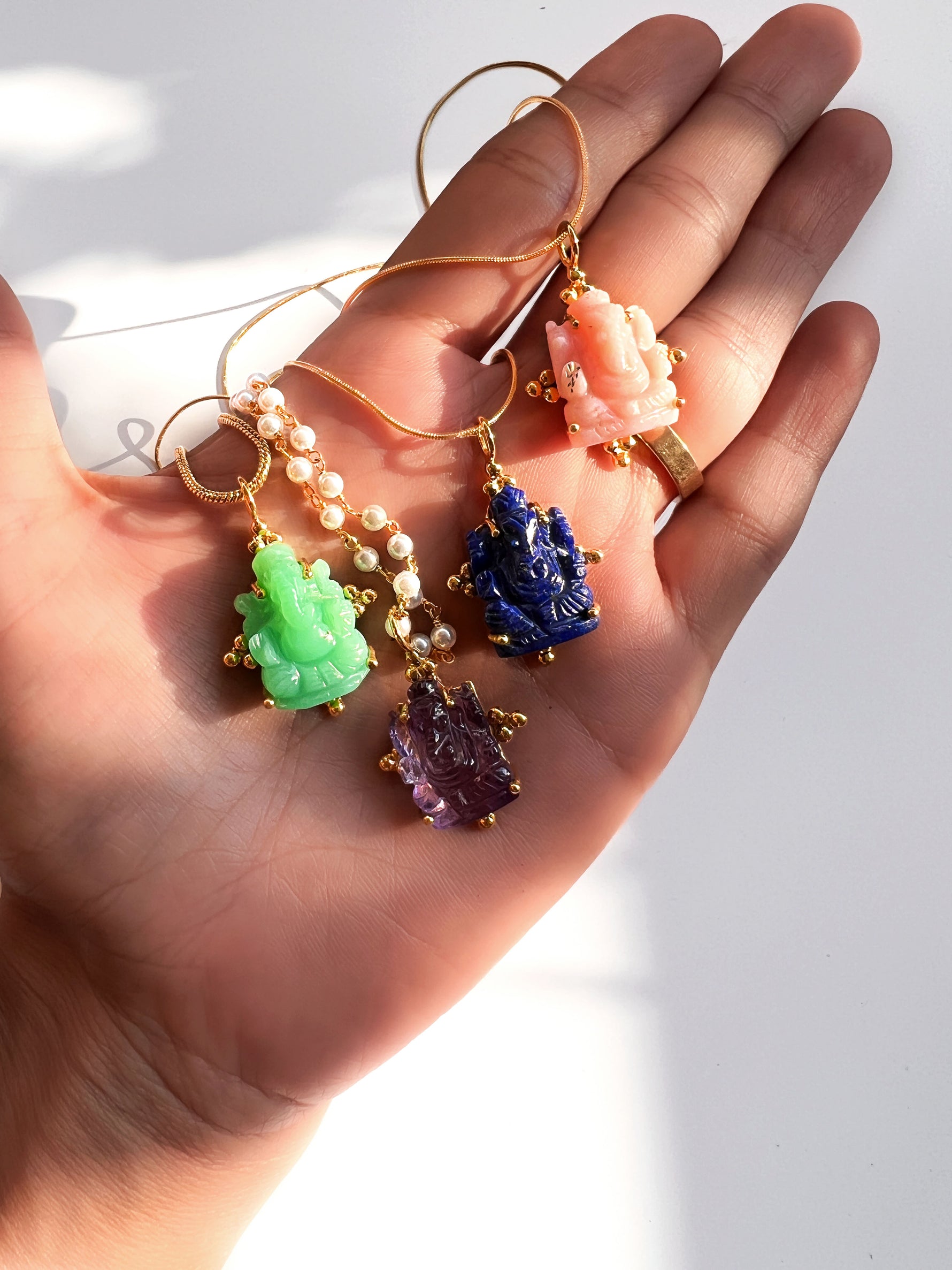 Wearable keepsake of Ganeshji, the Hindu God of new beginnings & remover of all obstacles that you can wear as an everyday talisman.