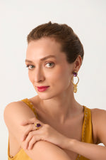 An Amethyst toned glass stone encased in tiny hand sculpted leaf prongs, it's a ring to add that little accent on days that make a quite statement.