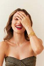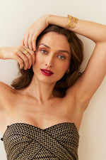 The Jeweled Twiggy Cuff is an elegant statement addition to your wardrobe with it's unique surface texture and an asymmetric sprinkle of sparkle on the edges.