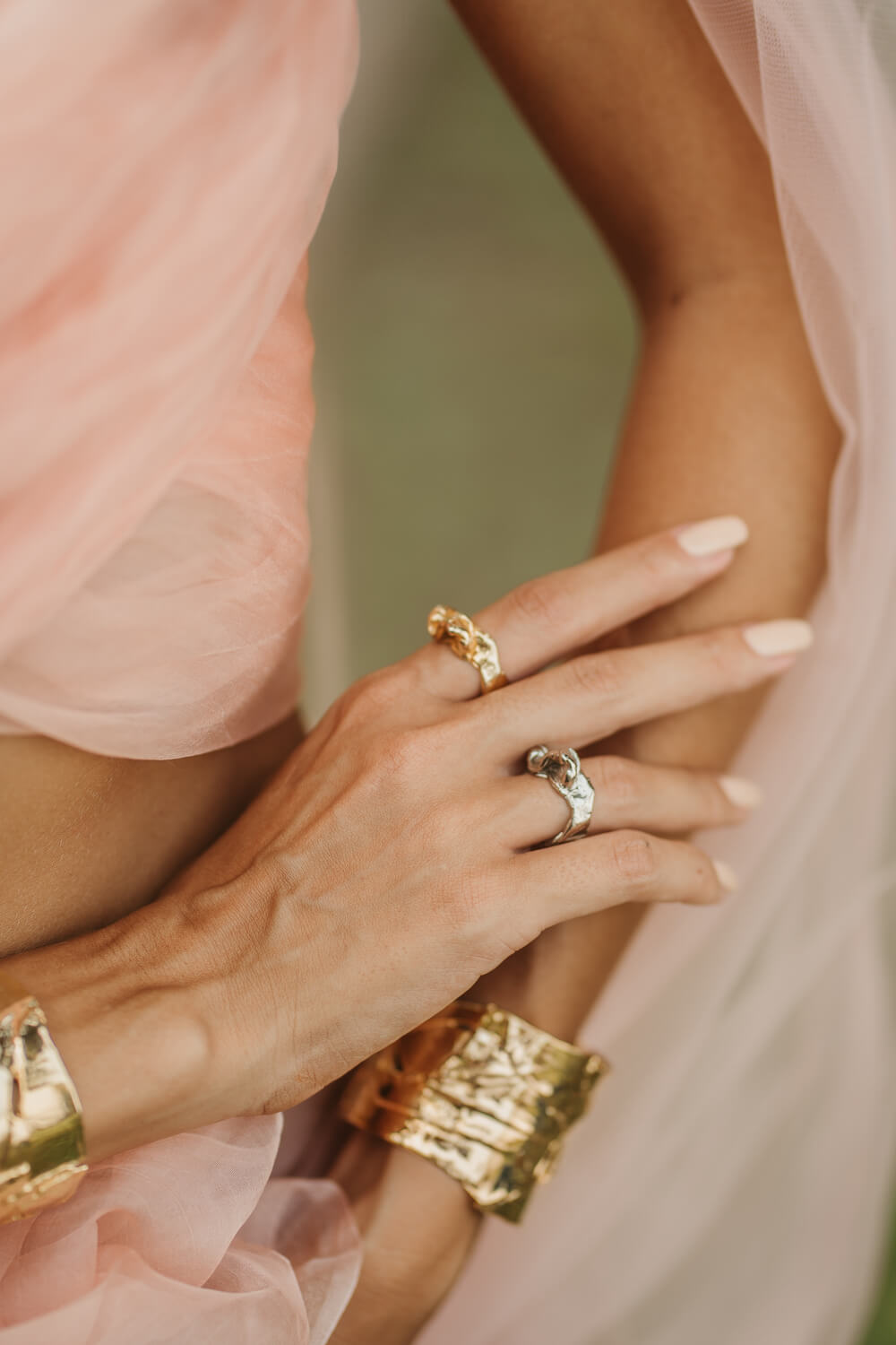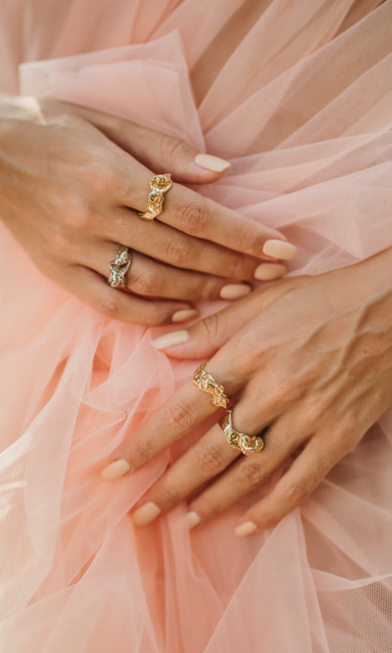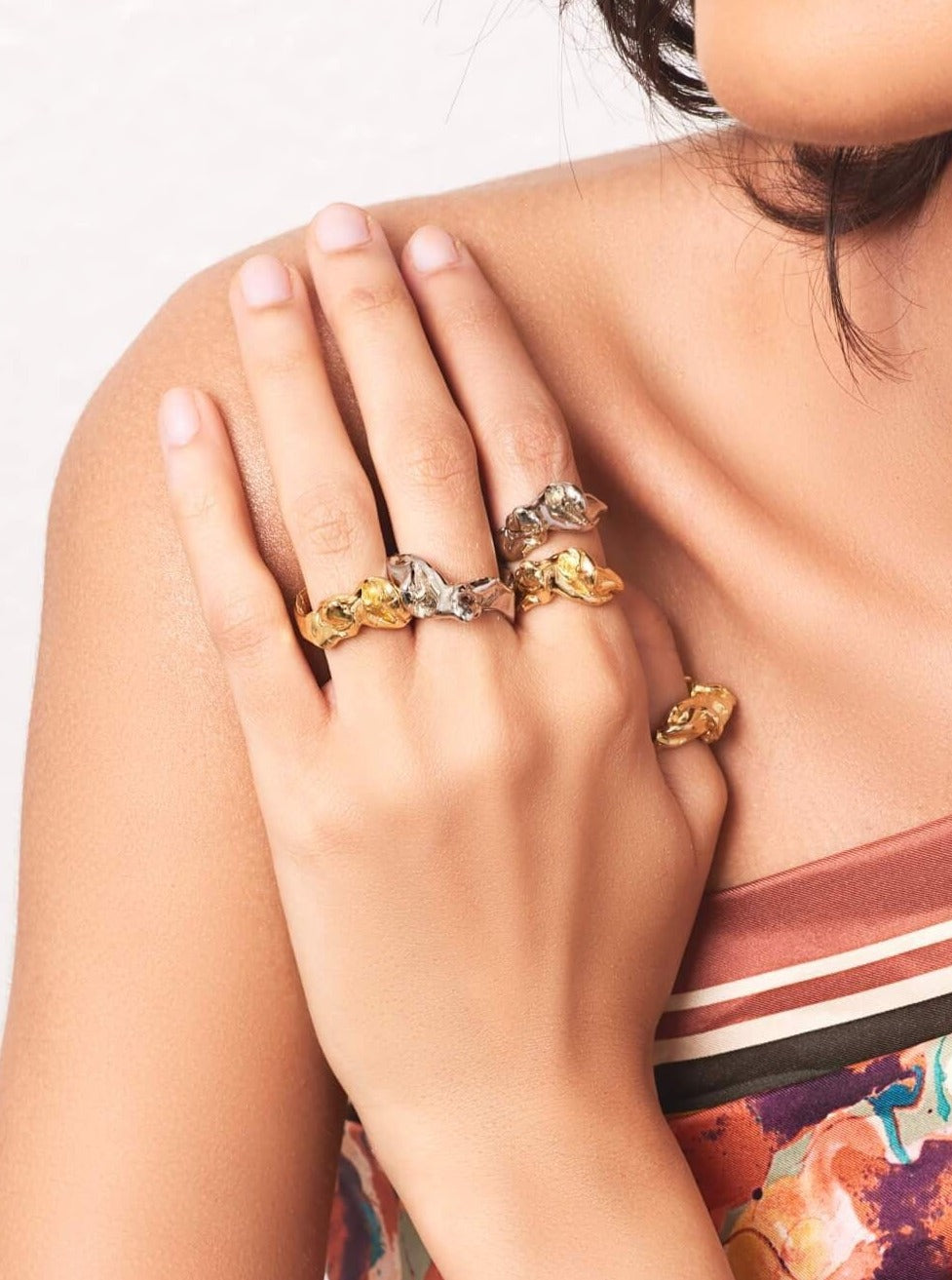 Inspired from the beautiful textures of corals and languid feel of underwater plants, each piece is an ode to nature. The perfect minimal ring that works beautifully as a single piece or stacked up to armour your fingers. This ring is Slightly Adjustable.